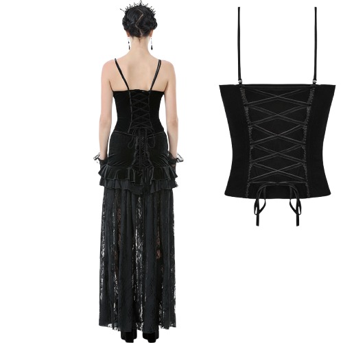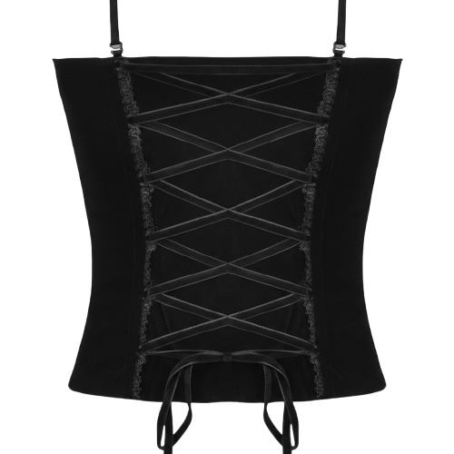 • Victorian Gothic Design – Elegant corset-style sleeveless top with a dramatic V-neckline.