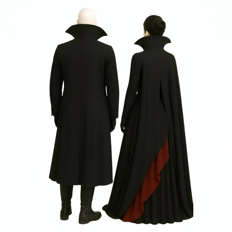 Bring the mystery of the Victorian era to life with our Gothic Vampire Costume Set – a perfect combination of elegance, drama, and craftsmanship. Designed for couples, this set captures the essence of gothic romance with rich black fabric, striking high collars, and dramatic red accents that embody classic vampire allure.